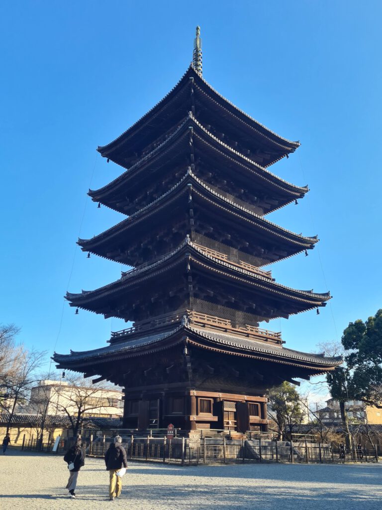 * Die Pagode als Weltenbaum: Der zentrale Pfeiler der Toji-Pagode (Shinbashira) verbindet die Erde mit dem Himmel. Wenn man die Stockwerke von unten nach oben betrachtet, symbolisiert dies den Aufstieg von der materiellen Unwissenheit zur höchsten Erleuchtung an der Spitze.